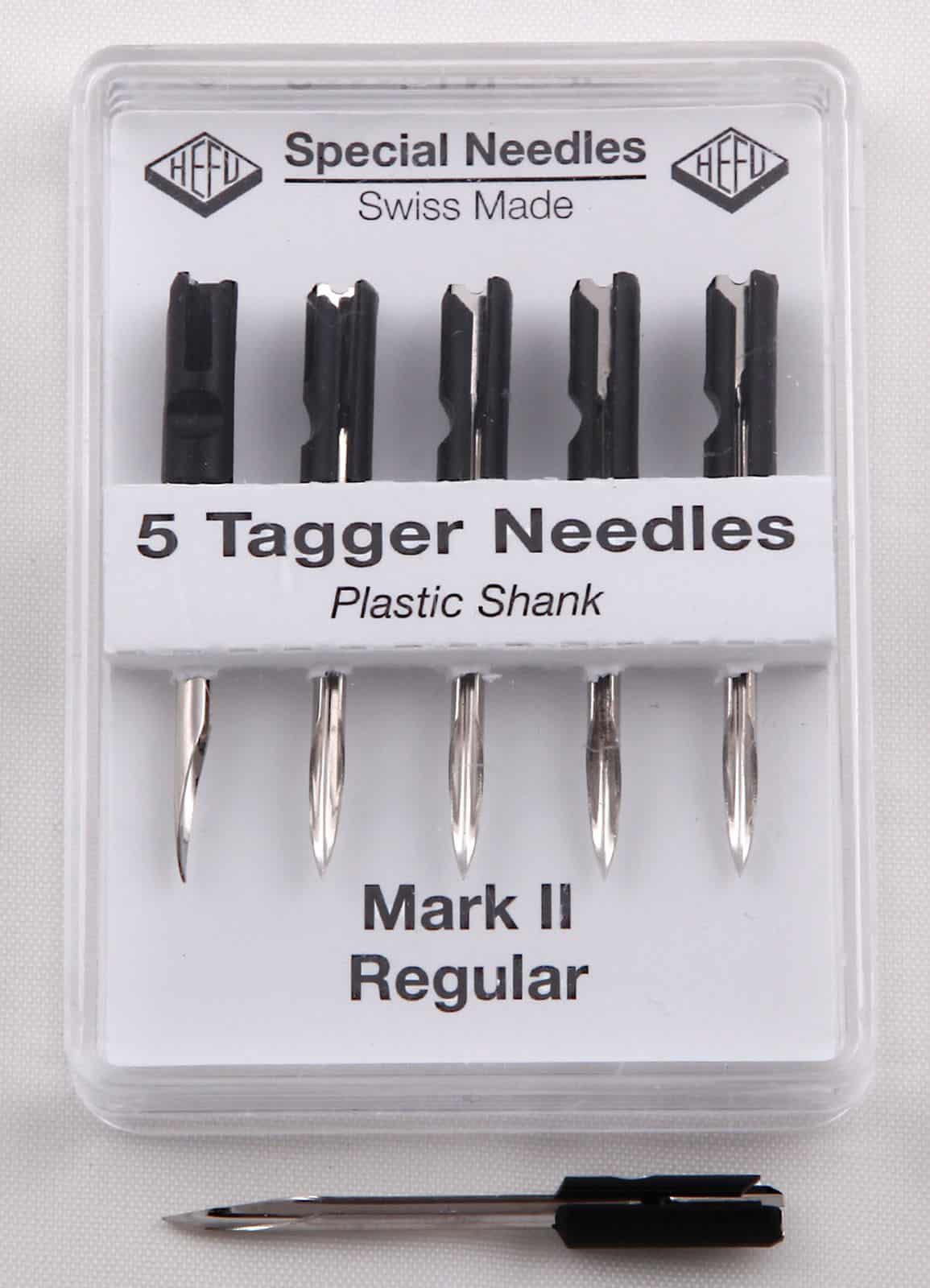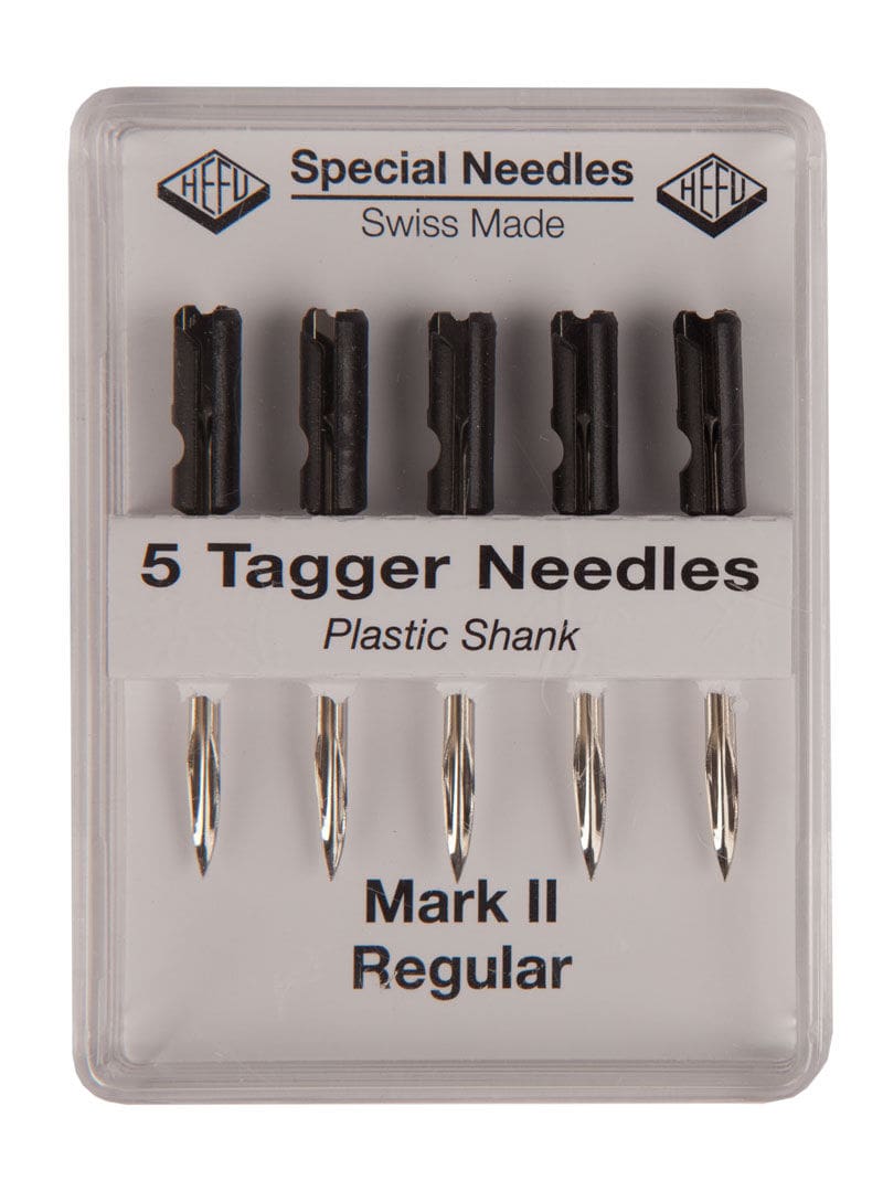 5 Stk. hochwertige Ersatznadeln mit integriertem Messer. Für die Kennzeichnung von normalen Textilien mittels Heftfäden und Etiketten. Zum Wechseln der Nadeln einfach den Nadelhalter (direkt neben der Nadel an der Etikettierpistole) um 90 Grad drehen. Die Nadel ggf. mit einer Zange herausziehen, neue Nadel einsetzen und dann den Nadelhalter wieder schliessen. Ebenfalls passend für folgende Etikettierpistolen: Avery Dennison Standard, Mark II Standard / Mark III Standard von Avery Dennison, QuickStar S, ARROW 9SB, Taggy 2S / TagStar Modell B, Saga 60S / Saga 68S, TexStar MK2 Std / MK3 Std / TexStar Pro Std, Galaxy DJ-3000 STD,Hirode HD-8 STD.
