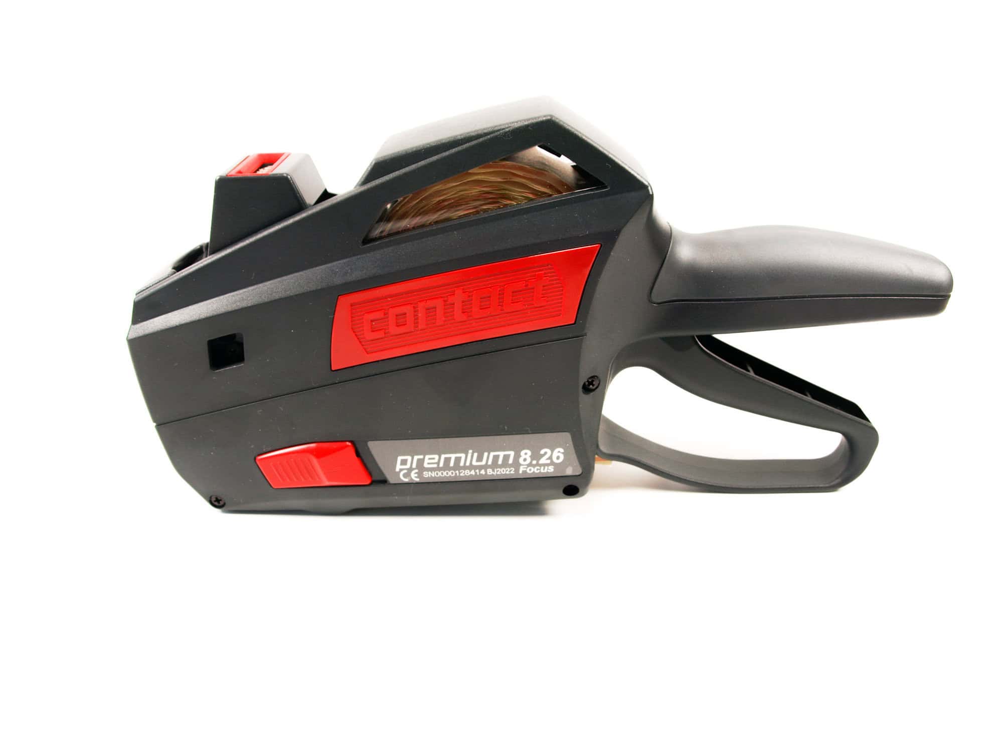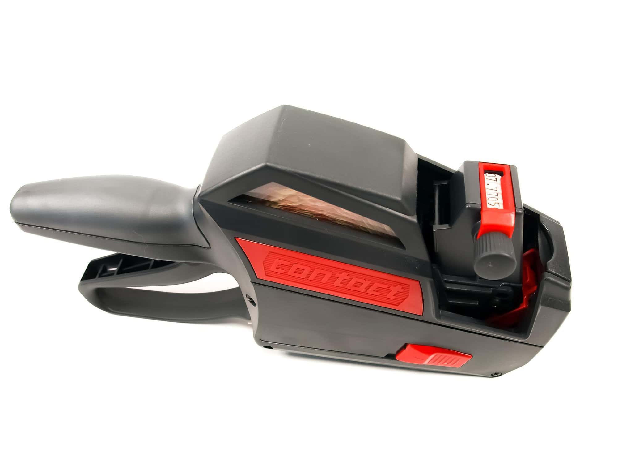 Der Preisauszeichner Contact Premium 8.26 ist ein hochwertiger Premium-Auszeichner für Etiketten 26×12 mm. Er verfügt über 8 Stellen und eignet sich besonders für die einfache Preisauszeichnung von Frankenbeträgen. Der Preisauszeichner Contact Premium 8.26 ist besonders langlebig. Die Vorteile des Contact Premiun sind: Ein angenehmer Softgrip-Gummigriff, einfache Etikettenwechsel, genaue Etikettentransport, einfache Wechsel der Farbrollen. Bei Tiefkühlprodukten kann eine spezielle Farbrolle eingelegt werden. Ebenfalls an Lager haben wir die dazu geeigneten Etiketten und Farbrollen.